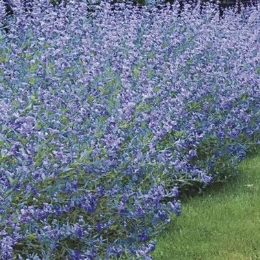 Virág: Élénk kék–ibolyáskék, tömött fürtökben