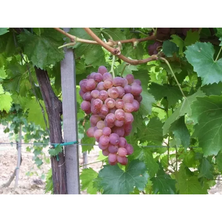 Gyümölcse: Pirosas-lilás bogyók, jellegzetes eperaromával, közepes méretű fürtök.