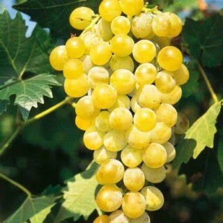 Gyümölcse: Nagy, laza fürtök, sárgászöld színű bogyók, finom muskotályos ízzel.