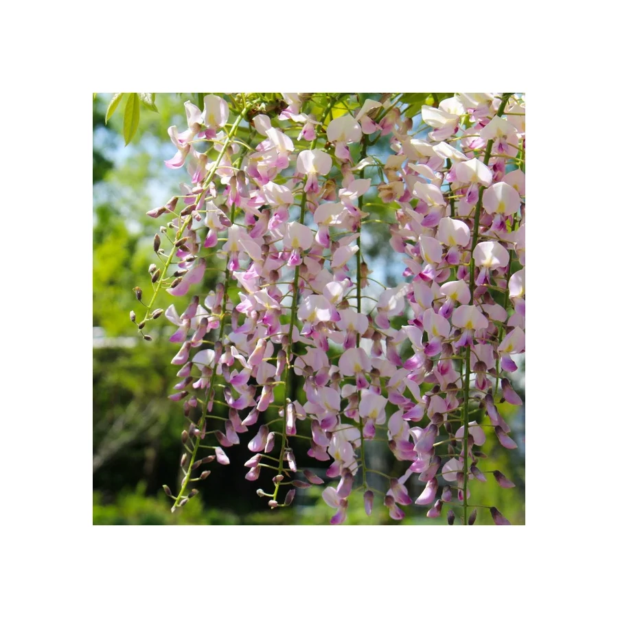A Wisteria floribunda 'Lilac Rose' a japán lilaakácok (Wisteria floribunda) közül egy különleges, rózsás-lila árnyalatú virágokkal rendelkező fajta, amelyet főként dekoratív, lecsüngő, illatos virágfürtjei miatt ültetnek. A fürtök hossza elérheti az 50–60 cm-t, ami bőséges és látványos virágzást jelent május végén–június elején. Virágai kezdetben lágy rózsaszínes-lilás árnyalatúak, majd enyhén kifakulnak világos rózsaszínre, a sárgás mézvezetőkkel együtt különösen finom és romantikus színhatást keltenek. Illatuk kellemesen édeskés, virágzáskor méheket és más beporzókat vonzanak. A növény erőteljes növekedésű, évente több métert is képes hajtani. Ezért csak erős tartószerkezetre (pl. pergola, lugas, falra erősített rács) javasolt futtatni. A virágzás serkentése és a formás habitus megtartása érdekében rendszeres metszést igényel: nyáron visszavágást, tél végén formázó metszést. Napos, meleg fekvésű helyet, valamint jó vízáteresztő, humuszos talajt igényel. Télállósága kiváló, így hazai klímán is biztonságosan nevelhető. Évekkel a telepítés után egyre bőségesebb virágzást ad, ha megfelelően gondozzuk. Magasság: 6–10 m (futtatva), évente akár 2–3 m növekedés Virágzás: Május–június Virág: Hosszú (50–60 cm), lecsüngő fürtök, rózsás-lilás árnyalat, illatos Fényigény: Teljes napfény Talaj: Jó vízáteresztő, humuszban gazdag, enyhén savas vagy semleges Vízigény: Közepes – a virágzás alatt mérsékelt öntözés előnyös Télállóság: Jó – hazánkban biztonsággal áttelel Felhasználás: Pergolák, falak, rácsok befuttatására; látványos virágdíszítéshez, romantikus kertekbe