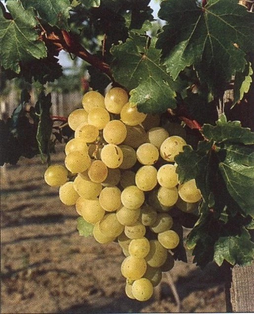 Gyümölcse: Nagy fürtű, sárgás színű, muskotályos, édes ízű bogyók.